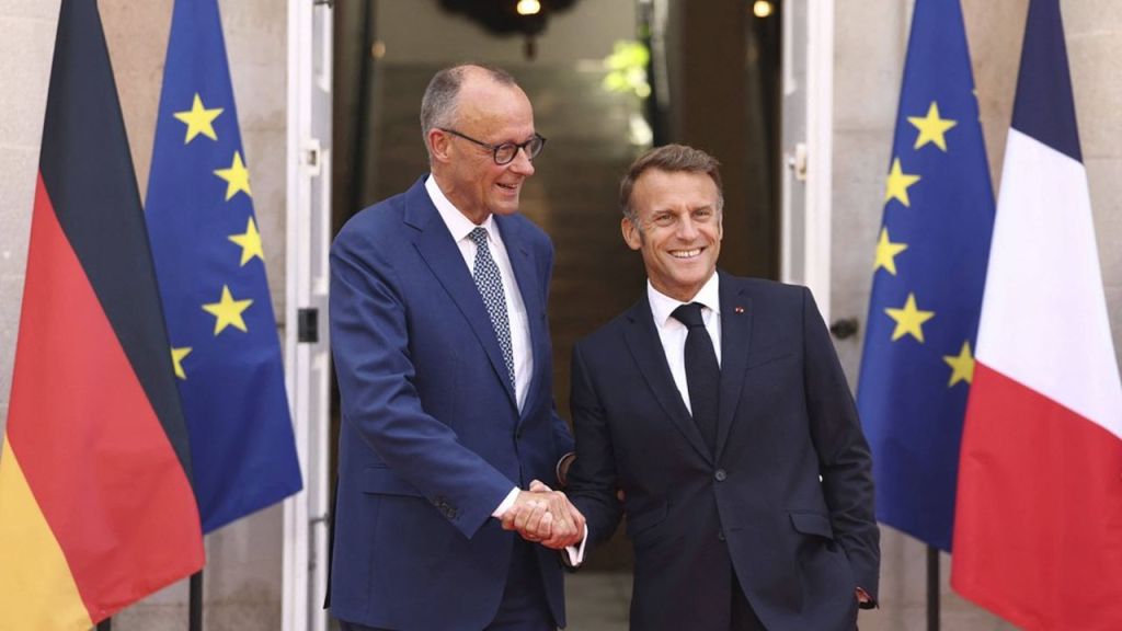 25th Franco-German Council of Ministers: President Emmanuel Macron and Chancellor Friedrich Merz at Fort du Cap Brun in Toulon. (MaxPPP TagID: maxnewsspecialtwo317056.jpg) [Photo via MaxPPP]