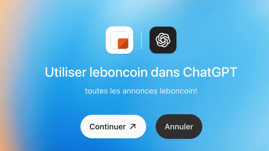 Depuis le 9 février 2026, Leboncoin est disponible dans le store d’apps de ChatGPT, lancé en décembre 2025. Le principe : vous connectez votre compte Leboncoin, et vous pouvez ensuite chercher des annonces directement depuis la fenêtre de conversation de ChatGPT.